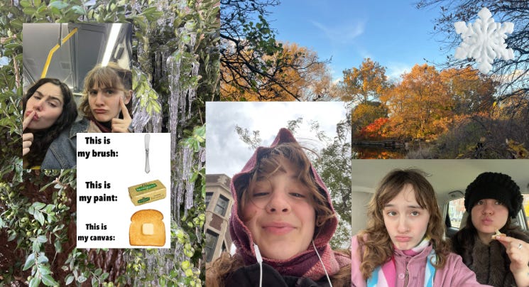 I’ve been fortunate enough to spend an incredibly joyous weekend with my dear friends preceding the snow, and I am in a season of feeling very fortunate. I do not mean to diminish the seasonal difficulties that many experience without fail at the changing of the seasons. I am wearing my own heavy coats of wintertime too. But we cannot fall over and resign ourselves to a miserable cold season. We must try to put mittens on each other’s hands and remain colorful.